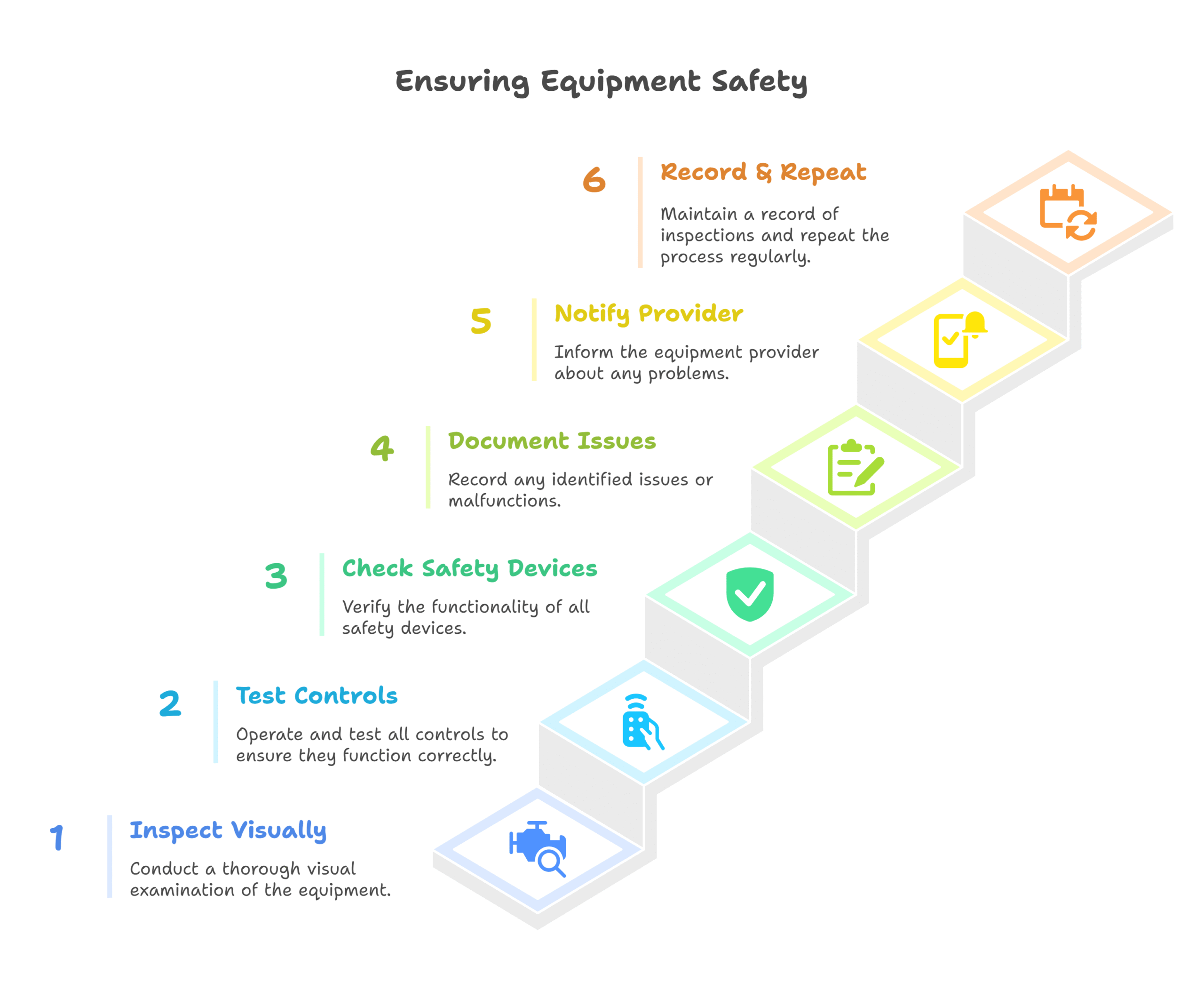 To cover all bases, your rented equipment safety checklist should include these core areas: